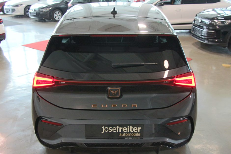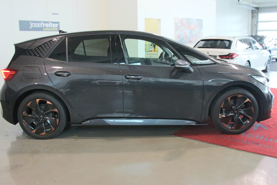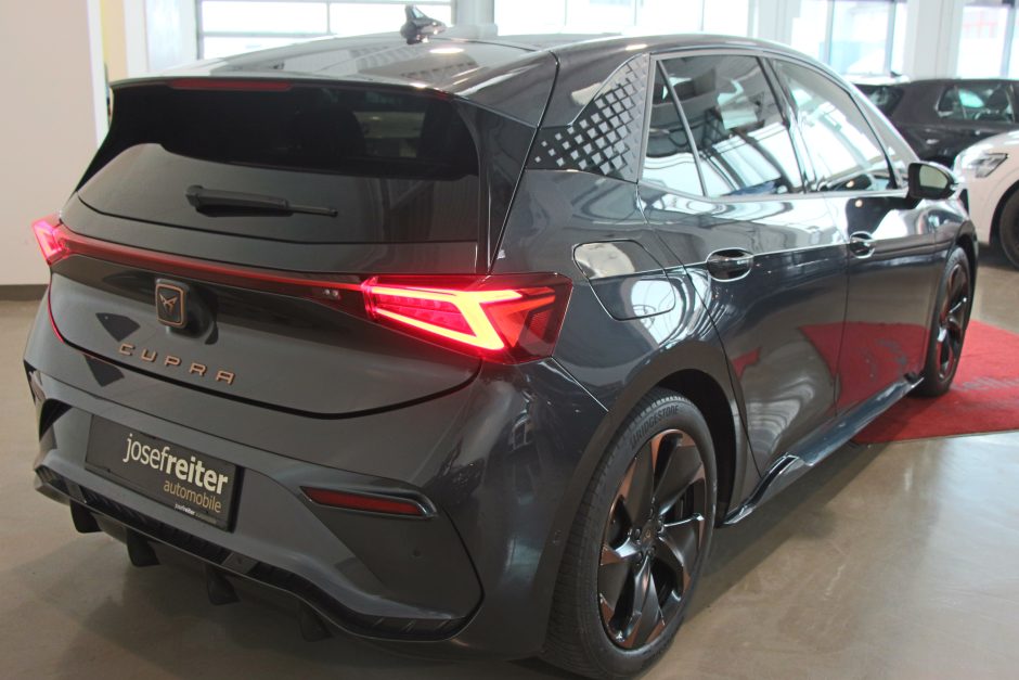 Der CUPRA Born 77/82 e-Boost ist ein herausragendes Elektrofahrzeug, das sportliche Leistung und moderne Technologie vereint. Mit einer Leistung von 231 PS und Hinterradantrieb bietet dieses Fahrzeug eine dynamische und präzise Fahrerfahrung. Der elegante graue Anstrich und die sportlichen Elemente machen ihn zu einem echten Hingucker auf der Straße.