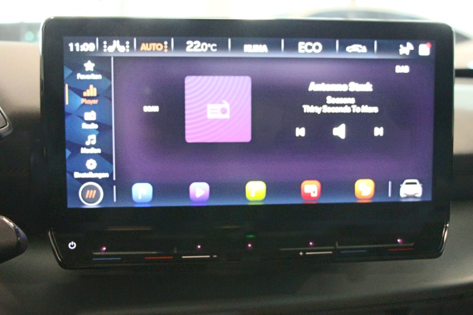 Im Innenraum genießen Sie höchsten Komfort dank der elektrischen Sportsitze mit Sitzheizung, einem Head-up-Display und einem multifunktionalen Lederlenkrad. Die Klimaautomatik und die Lenkradheizung sorgen für zusätzliche Annehmlichkeiten, während das innovative Infotainmentsystem mit Navigationsgerät, DAB-Radio und Smartphone-Integration über Apple CarPlay und Android Auto verbunden ist.